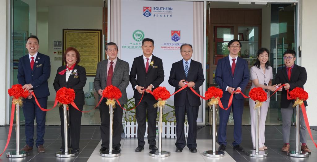 我校马来西亚南方大学学院中医孔子学院于2025年11月21日在柔佛州新山市举行揭牌仪式。中国驻马来西亚大使欧阳玉靖、南方大学学院董事长拿督陈洺臣、理事长莫泽浩、校长蔡润煌、天津中医药大学副校长邱峰、以及马来西亚各孔子学院院长、社会各界人士等共同出席了仪式。现场气氛热烈,共百余人共同见证了这一时刻。作为马来西亚首家以中医为特色的孔子学院,将推动中马两国在教育、文化及传统医药领域的合作迈入了新阶段。仪式上...