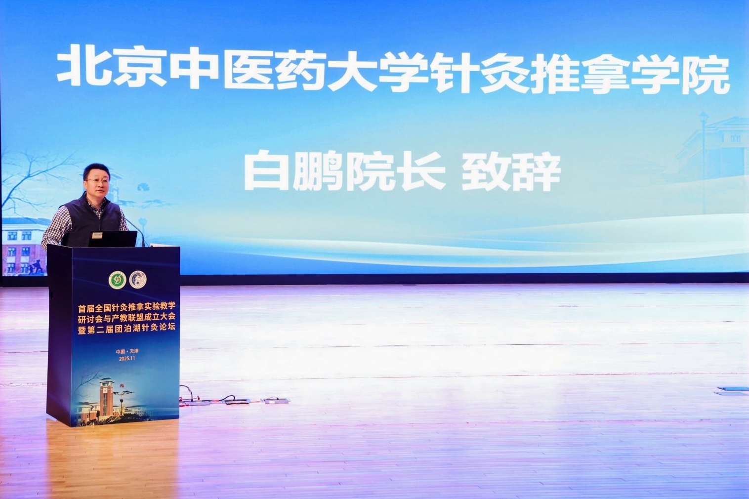 天津中医药大学校长高秀梅在致辞中指出,45年来学院持续凝聚特色与优势,与时俱进,守正创新,不断推动学院高质量发展。今后学院要牢牢把握高等教育内涵式发展主线,以本次大会为契机,整合优质资源,对接国家战略需求,持续提升针灸推拿学科服务健康中国建设的能力,贡献“天中智慧”与“天中力量”。