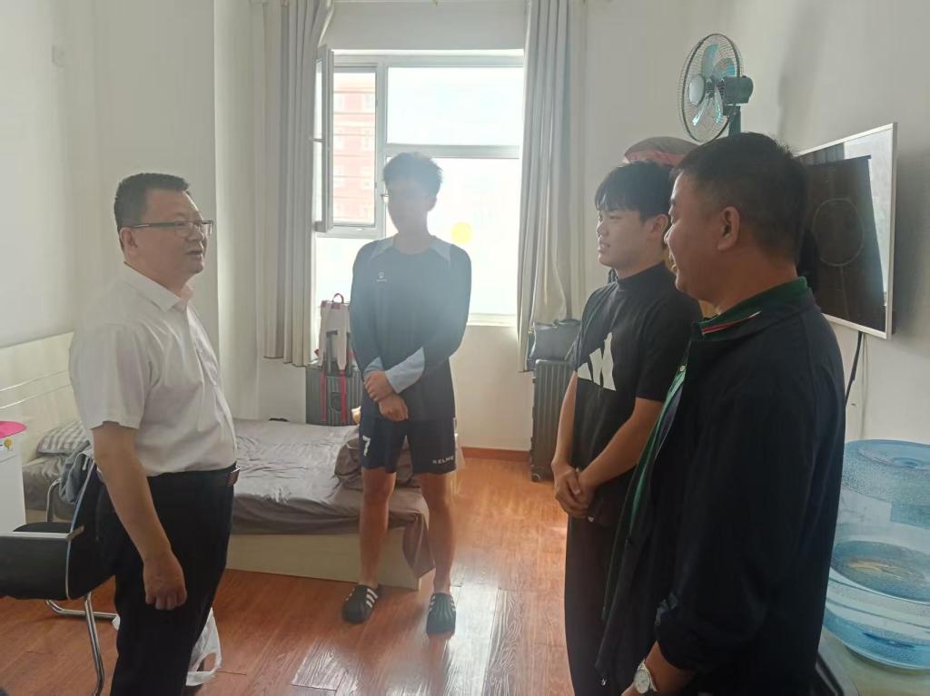 张华泉副书记一行在于田县教育局相关负责同志的陪同下抵达支教团驻地走访宿舍、与支教团师生亲切交谈,了解师生日常生活管理和教学准备等工作,并代表学校向支教团的师生表达了美好祝福与殷切期望,勉励支教师生擦亮初心底色,勇担时代重任,真情真心奉献,传授好中医药等中华优秀传统文化,传播好民族团结一家亲的坚定信念,传承好“援疆精神”和“天中精神”,在美丽的昆仑山下留下自己最美的青春画卷。