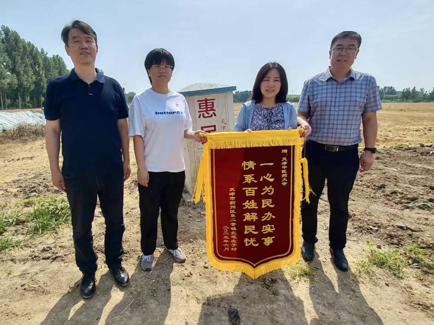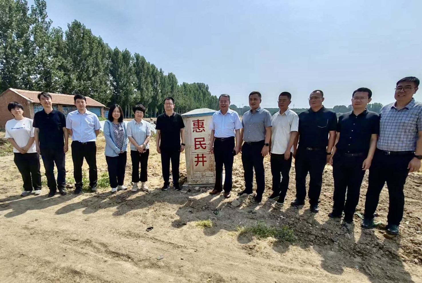 随后,刘革生书记带队来到北毛庄村,实地查看村庄水井建设情况。北毛庄村“两委”干部代表全村群众向学校送上锦旗,感谢学校的扶持,让村民用上放心水。