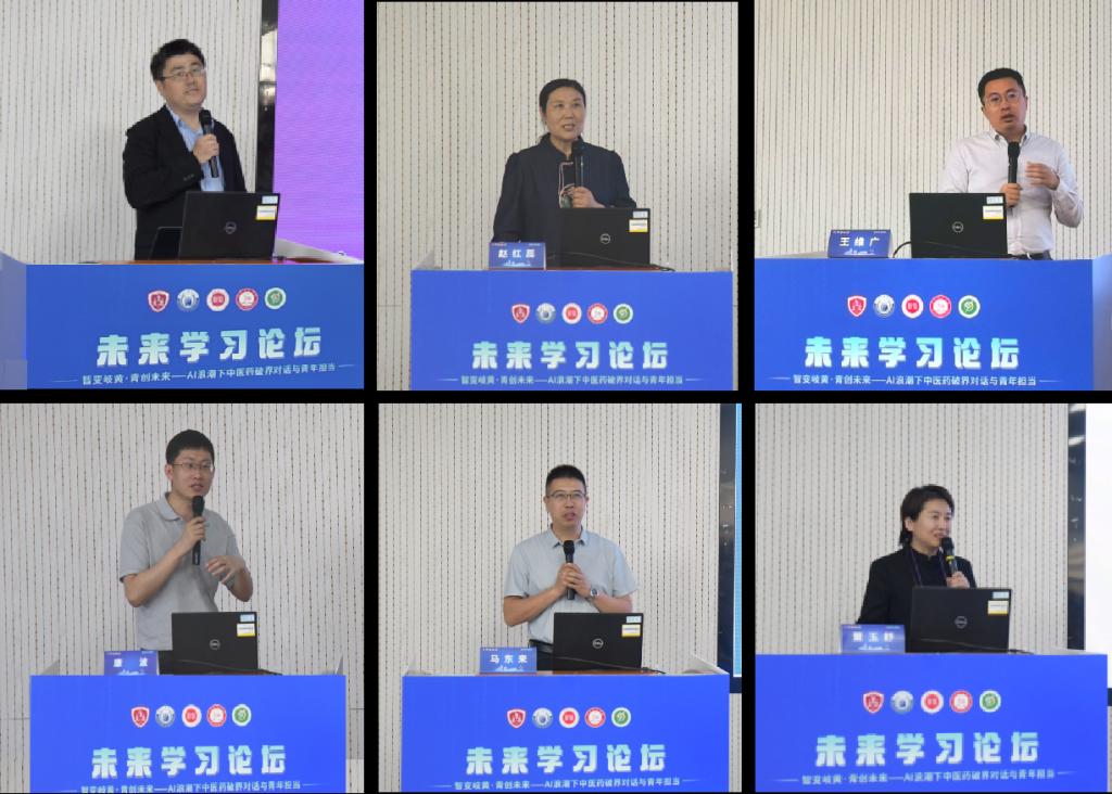 论坛特邀六位来自不同领域的专家学者和企业代表作主题报告,分享了他们在中医药与AI融合领域的最新研究成果和实践经验。深圳清华大学研究院龚超副研究员阐述了AI技术的发展历程,展示了与中医药领域融合的路径。北京中医药大学王维广以课程教学场景为例,展示了人工智能在中医经典教学中的创新应用。清华大学赵红蕊教授分享了遥感与地理信息系统(GIS)在大学生心理压力监测中的应用。天津智临天河科技有限公司总经理康波聚焦超智融合技术在中医药协同创新中的应用,通过实际案例展示其在医疗健康、公共服务等领域的作用。河北中医药大学马东来教授主要探讨了AI在中医药教育中的应用,描绘AI赋能中医药教育智慧化场景的蓝图。慧医谷中医药科技(天津)股份有限公司董事长董玉舒展示了AI在中医药产业领域的广泛应用和支持案例。