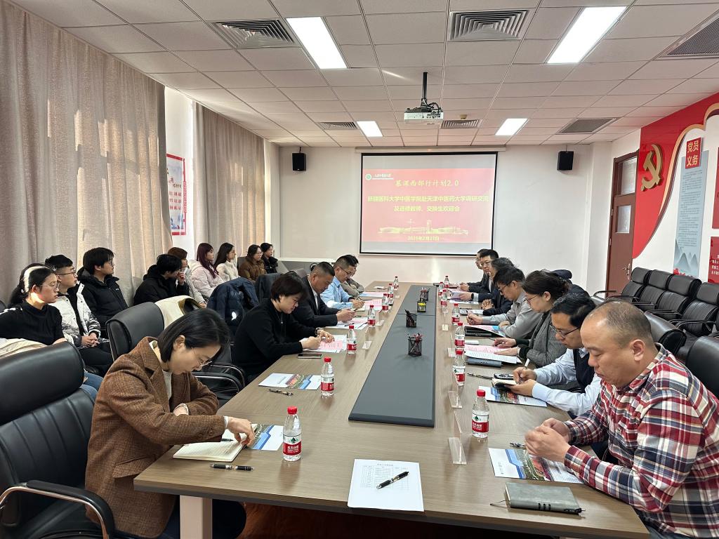2025年2月23日上午,中药学院举办新疆医科大学中药学专业进修教师和交换生欢迎会。天津中医药大学副校长郭义出席,教务处处长张志国、新疆医科大学中医学院副院长刘俊昌、中药系主任兰卫、学工办副主任屈燕和我校中药学院党政领导参加。
