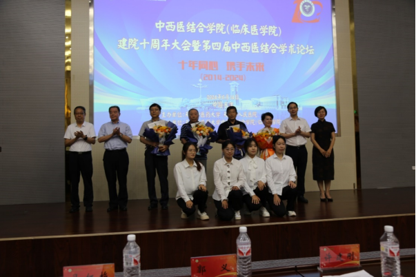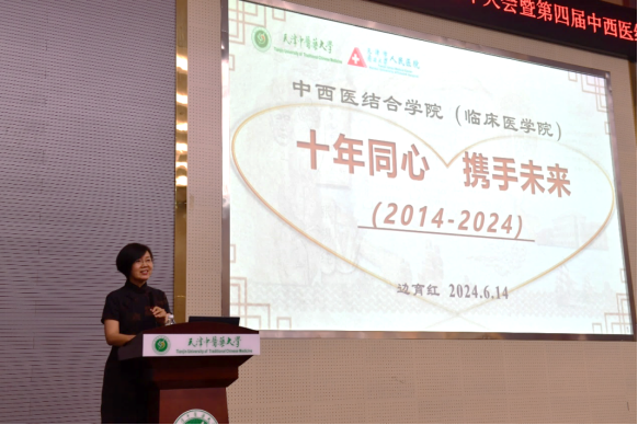 为庆祝天津中医药大学中西医结合学院成立十周年,促进中西医结合学科快速发展,适应新时代高质量发展的要求,由天津中医药大学、天津市人民医院主办,天津中医药大学中西医结合学院(临床医学院)承办的建院十周年大会暨第四届中西医结合学术论坛于2024年6月14日在求真报告厅召开。名誉校长张伯礼院士视频致辞祝贺学院成立十周年,天津中医药大学校党委书记刘革生,副校长王耀刚、郭义、张俊华,天津市人民医院副院长许建刚出席,宣传部、教务处、科研处、研究生院、学工部、校团委等部门领导,退休教师代表、业界专家学者和本院师生共约511人参会。