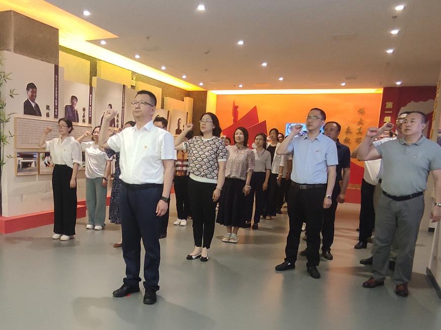 观展结束后,校党委副书记张华泉带领全体党员干部重温入党誓词,面向党旗,举起右拳,庄严宣誓。