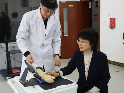在座谈会前、会后,朱桂司长一行实地考察了天津中医药大学中医药标准化研究所、我校与天津大学共建的智慧中医实验室、针灸学国家级实验教学示范中心、现代中医药海河实验室。