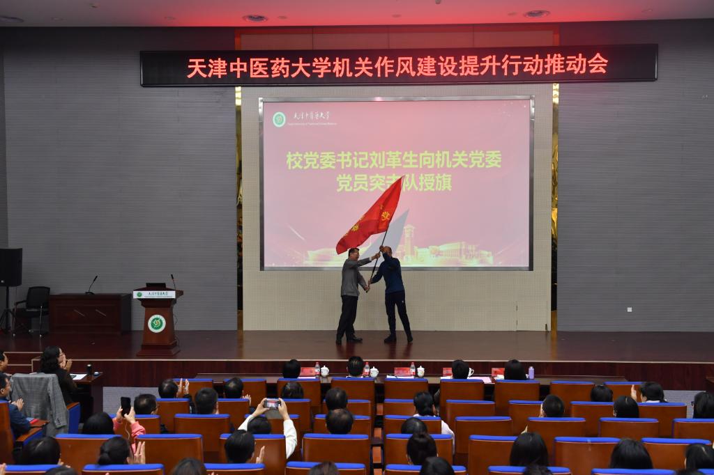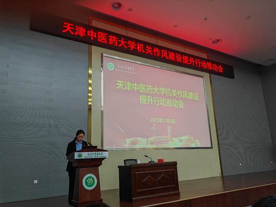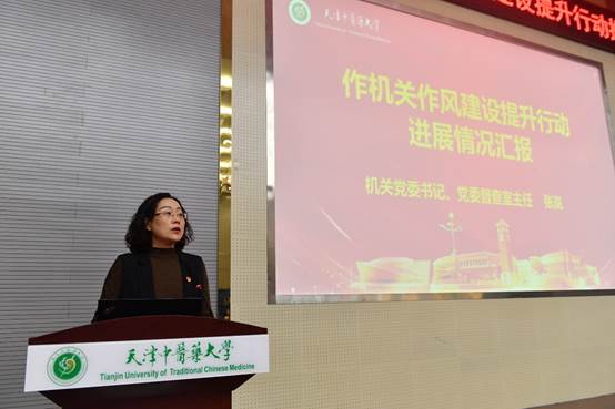 机关党委书记张岚同志从加强统筹部署深化作风建设再提升、大兴调查研究推动调查研究见行见效、积极担当作为服务学校中心工作、强化宗旨意识进一步提升师生获得感和幸福感四个方面介绍机关作风建设提升行动的主要做法和工作成效。机关纪委书记闫兴钢同志宣读《天津中医药大学机关工作人员行为规范》,引导机关干部以行为规范为行动指南,努力树立良好的机关干部形象。