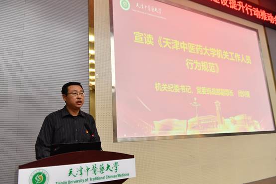 机关纪委书记闫兴钢宣读《天津中医药大学机关工作人员行为规范》