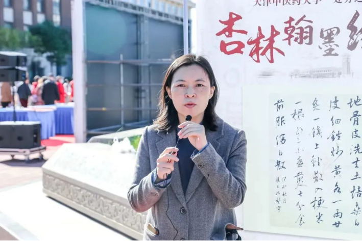 活动伊始,校团委书记张晶老师介绍了“处方之美”系列活动的前期开展情况。邀请书法名家开书法理论基础知识讲座;筛选中医古籍中经典处方,举办“处方之美”经典书法展览;开展“处方之美”书法训练营,专家名师手把手对学生进行教学实践。结合中医药特色的活动设计,为书法大赛奠定了基础,也拓展了美育实践活动的渠道。
