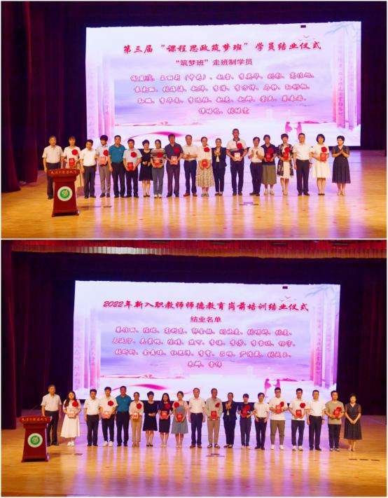 学校领导及附属医院领导为筑梦班、新入职教职工岗前培训颁发结业证书并合影留念