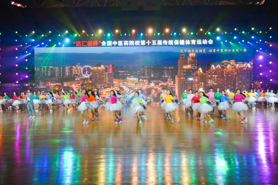 开幕式上,“传承岐黄 律动津沽”主题文体表演异彩纷呈。表演分为序《时光之门》、《美丽天津欢迎您》《国粹薪火永相传》《青春健康耀中华》三个篇章和尾声《让时光守住永久》,青年学子们用律动的青春舞动现代中医的无限活力,展现新时代杏林青年的澎湃激情、豪迈风采。铿锵有力的动作,动人心魄的节奏,充分彰显了中医药深厚的历史积淀和文化底蕴,中医药学子在优秀的中华传统文化中浸润身心、传承弘扬,鼓舞着传运健儿们团结协作、拼搏进取、一往无前!