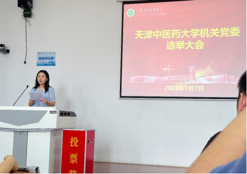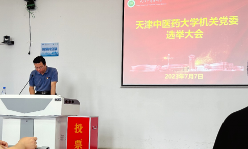7月7日,天津中医药大学机关党员选举大会在丁馨园E201举行。机关党委23个党支部的138名党员出席了会议,大会由机关党委书记张岚同志主持。
