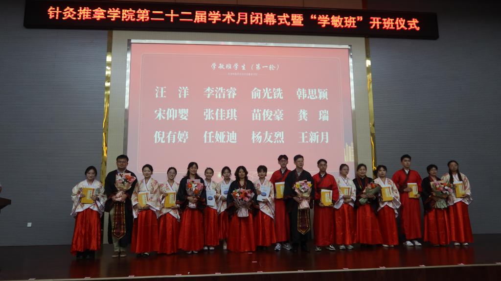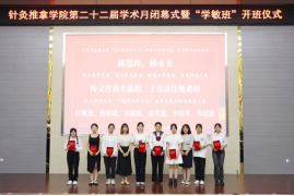 医道相通,中医药深厚的文化底蕴,注定了其继承创新离不开积累传承。与时俱进,现代中医药人才的培养体现在传统师承与院校教育的结合,而我院特色实践育人模式学敏班正逐步探索“中医新型师承”的人才培养模式,极大促进了中医药教育和医疗事业的健康持续发展。相信广大针推学子将踔厉奋发、不懈努力,定能成为有理想、敢担当、能吃苦、肯奋斗的新时代好青年。针推学院也将继续以学敏班为载体,深入贯彻落实《“十四五”中医药发展规划》,坚持立德树人根本任务,强化中医药特色人才建设,培育政治过硬、思想坚定、理想远大、医术精进、医德高尚的新时代中医药大学生,为国家和社会输送优质的中医人才,为学校“双一流”建设和中医药事业发展不懈努力。