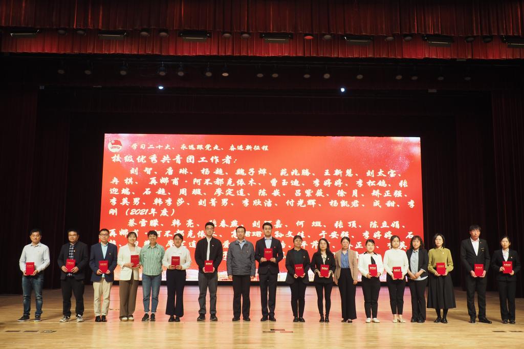最后,李鑫副书记作总结讲话。首先,他向受到表彰的先进集体、先进个人表示衷心的祝贺,向广大天中青年致以节日问候。同时,他勉励大家,以“学习二十大、永远跟党走、奋进新征程”主题教育实践活动为契机,以习近平总书记在庆祝中国共产主义青年团成立100周年大会上的重要讲话为遵循,当好“四个模范”,让青春在为祖国、为民族、为人民、为人类的不懈奋斗中绽放绚丽之花!他在讲话中还对全校团员青年、各级团组织和团干部以及各级学生组织和学生骨干提出了三点希望:一是希望广大团员青年坚定理想信念、勇担时代重任,始终做听党话、跟党走的新时代青年。二是各级团组织和广大团干部坚持立德树人、引领凝聚青年,不断巩固和扩大党执政的青年群众基础。三是希望各级学生组织和学生骨干厚植为民情怀、扎实履职尽责,主动为广大青年实现人生价值架桥铺路。