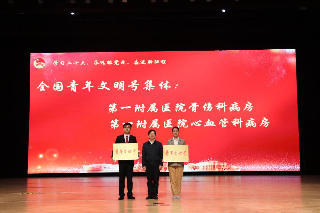 全国青年文明号获奖集体代表一附院骨伤科崔庆同同志,天津青年五四奖章获得者二附院急诊科杨凯君同志,天津市岗位技能大比武二等奖获得者、天津市优秀共青团干部再娜甫·阿不都克依木同志和天津市优秀共青团员代表研究生院陈志翰同学先后代表获奖集体和个人发言,号召广大天中青年与新时代同向同行、同频共振,在担当中历练,在尽责中成长,让青春在新时代改革开放的广阔天地中绚丽绽放!