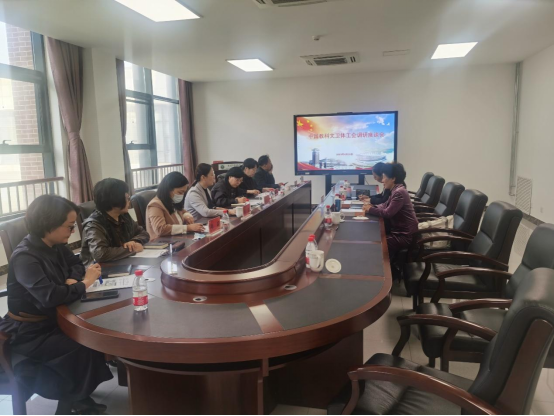 随后,校党委副书记、工会主席刘怡蔓同志主持召开了学校相关部门调研座谈会。党委常委统战部部长张梅、党委常委组织部部长朱莹、人事处处长冯莉、校工会常务副主席孟向文、中医学院副院长田露、劳模创新工作室负责人江丰分别围绕中医药人才培养进行了汇报。