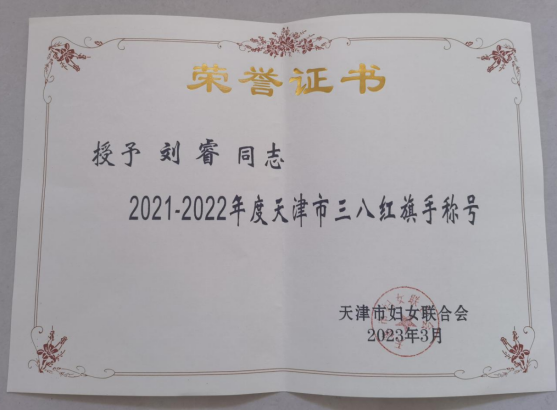 近日,天津市妇女联合会正式发文表彰2021-2022年度天津市三八红旗手标兵、三八红旗手(集体),我校中药制药工程学院刘睿教授被授予天津市三八红旗手荣誉称号,第一附属医院感染管理处被授予天津市三八红旗集体荣誉称号,充分体现了新时代天中女教师和女医务工作者的敬业风采和奉献精神。