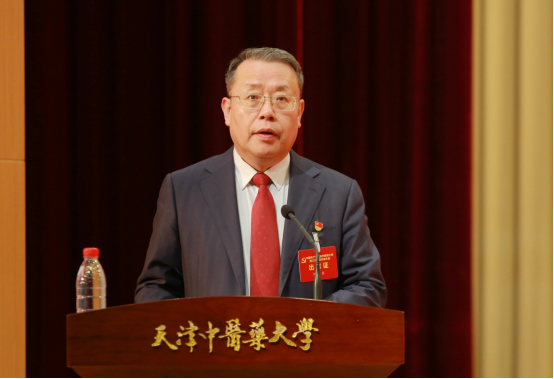 刘革生同志代表中国共产党天津中医药大学第二届委员会向大会作了题为《勇担强国使命,聚力改革创新,为全面建设“双一流”中医药大学而团结奋斗》的报告。