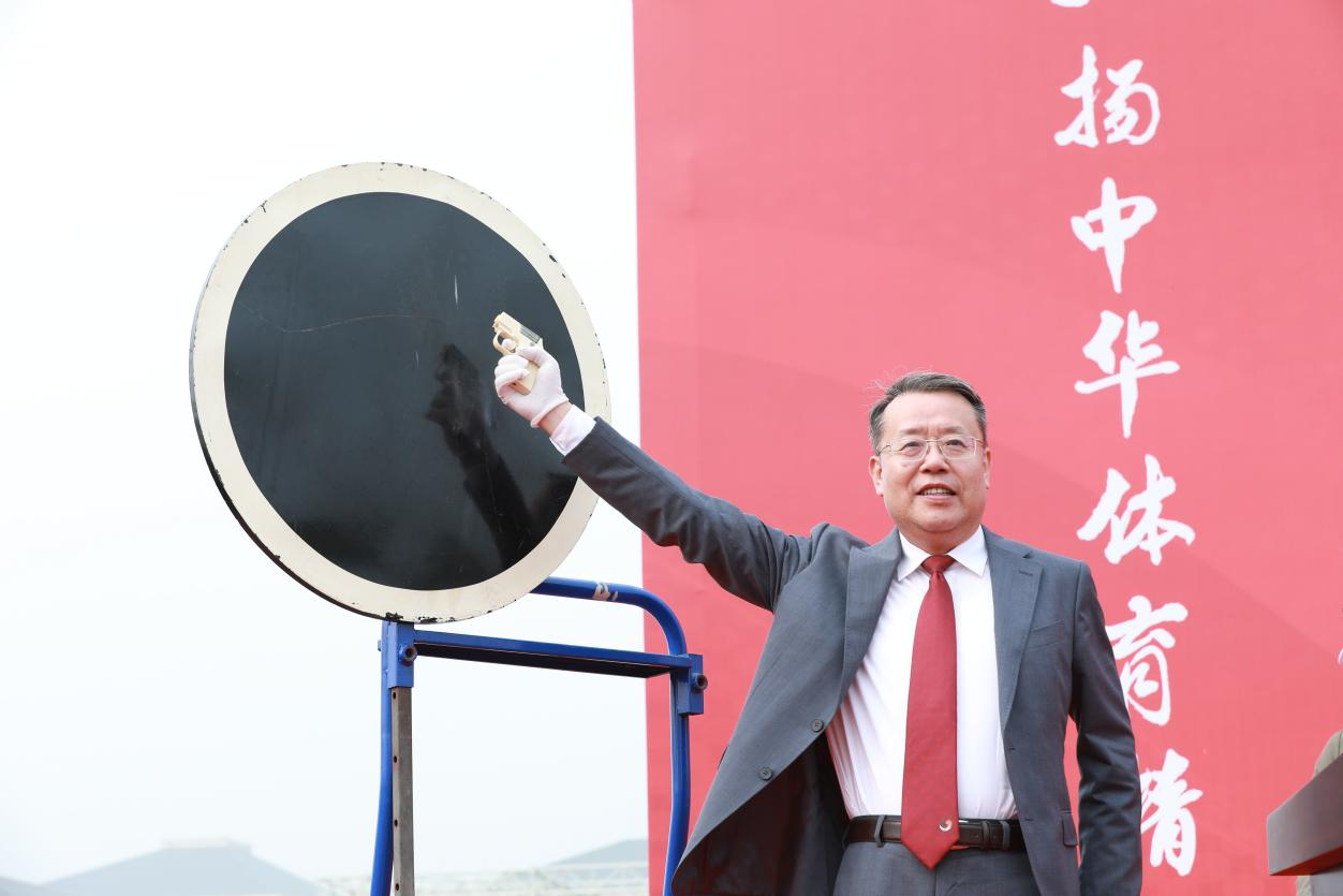 校党委书记刘革生为运动会鸣枪宣布开幕