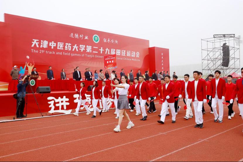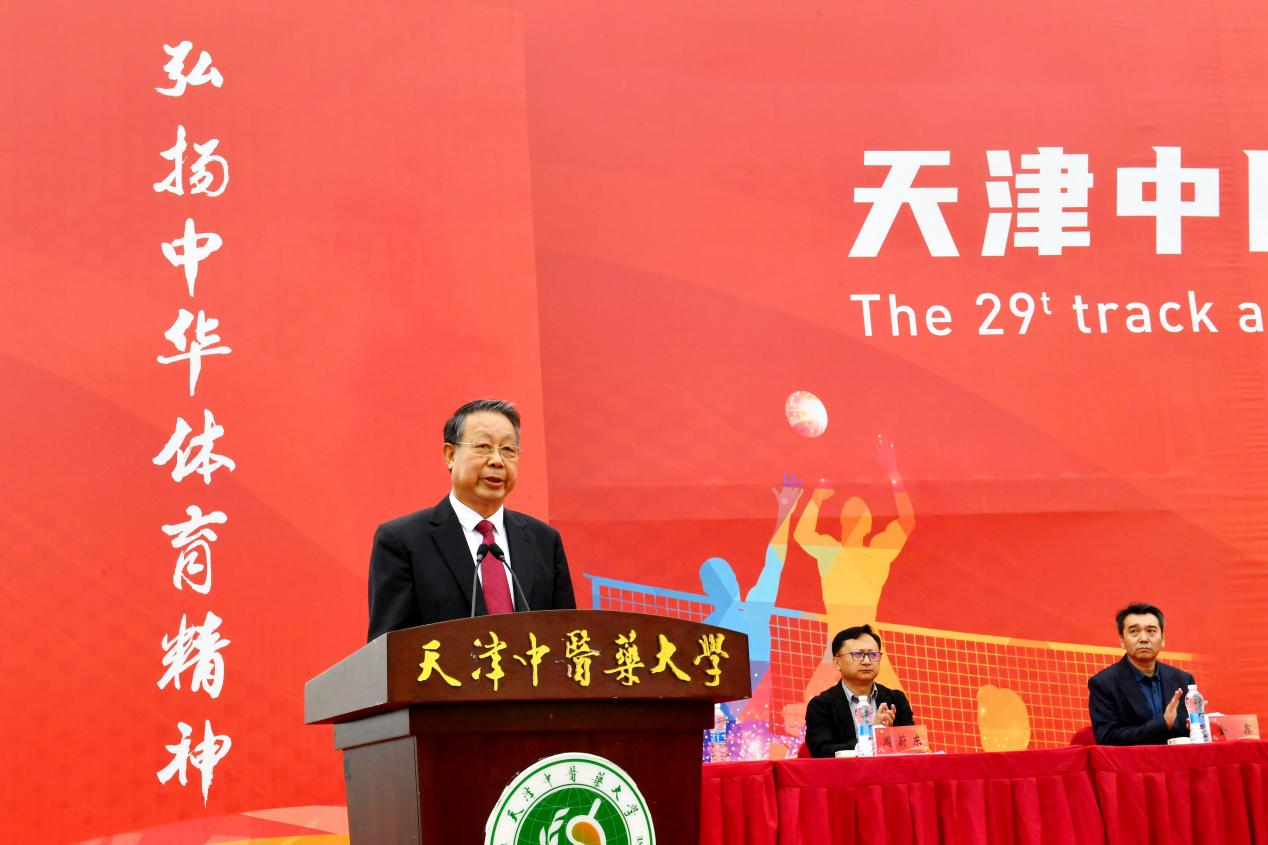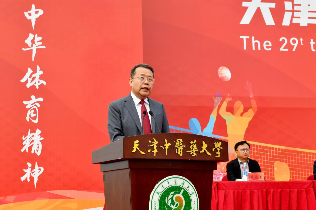 校党委书记刘革生为运动会鸣枪,并宣布天津中医药大学第二十九届田径运动会开幕。
