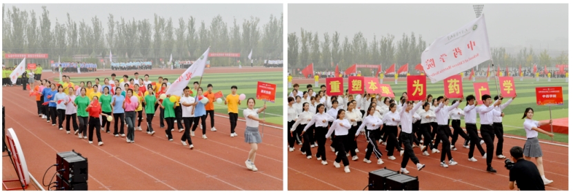开幕式正式开始。伴随着激昂的进行曲,国旗仪仗队、校旗、阳光体育旗、旗海、裁判员、校本部、一附院、二附院、四附院和各学院代表队依次走过主席台接受检阅。各方阵身着统一服装,精神抖擞、口号嘹亮,在主席台前的队列展示亮点不断、精彩纷呈,彰显了天中人的蓬勃风采和昂扬向上的精神风貌。