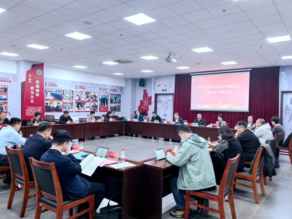 3月27日下午,中共天津中医药大学委员会三届五次全体会议在学校召开。会议专题听取学校2025年度意识形态、网络意识形态工作责任制落实情况汇报,审议并通过《2026 年天津中医药大学党政工作要点》《第五届教职工代表大会学校工作报告》。校党委书记刘革生主持会议并讲话,全体校党委委员出席会议。