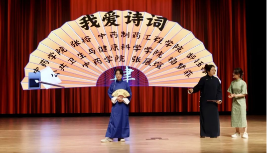 中药学院张裕、中药制药工程学院郜钰镎、公共卫生与健康科学学院杨梦菲、中药学院张展瑄作品《我爱诗词》