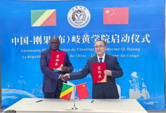 2025年12月3日,由中国国家医学中心建设单位天津中医药大学第一附属医院与刚果(布)中刚友好医院联合共建的刚果(布)岐黄学院在布拉柴维尔正式启动运营。中国驻刚果(布)大使安青、刚果(布)卫生部部长代表穆卡萨出席启动仪式并为首家岐黄学院揭牌。