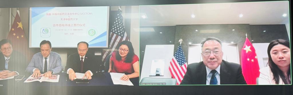 9月12日上午,天津中医药大学与美国-中国中医药交流合作中心举行线上签约仪式。此次合作得到中国驻纽约总领馆的指导与支持,双方将在医疗服务、人才培养、科研创新、文化交流等领域深化合作。校长高秀梅出席签约仪式并致辞。中国驻纽约总领馆科技参赞侯立宏、美国-中国中医药交流合作中心董事长张锦平及中心相关专家、学者出席会议并发言。我校国际教育学院/国际交流与合作处、科研处、第一附属医院,以及人工智能医疗科技(天津)有限公司负责人参加。