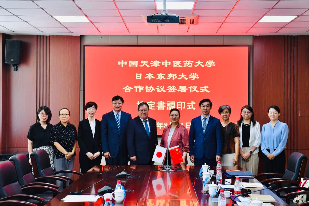 会谈中,高秀梅校长对渡边善则校长一行的到访表示热烈欢迎,详细介绍了天津中医药大学在中医药教育、科研创新及国际化发展等方面的成果。渡边善则校长分享了东邦大学在药学、医学领域的学科优势及国际化推进经验。双方围绕师生互访、联合科研、学术交流、长短期留学等具体合作项目展开深入探讨,达成共识。随后,两校校长共同签署《合作谅解备忘录》,明确将在中医药基础研究、临床应用、人才联合培养等领域开展长期合作。