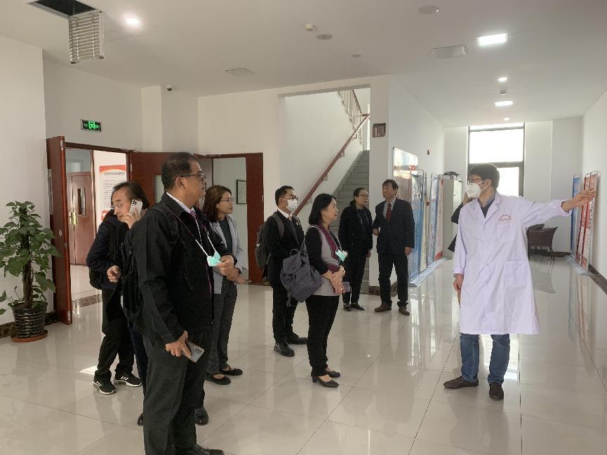 会后,代表团一行在国际教育学院领导及相关师生的陪同下,参观了我校中医药研究院、临床技能实训中心、留学生宿舍及餐厅。下午,代表团一行参观了我校第一附属医院。