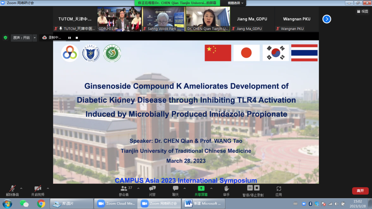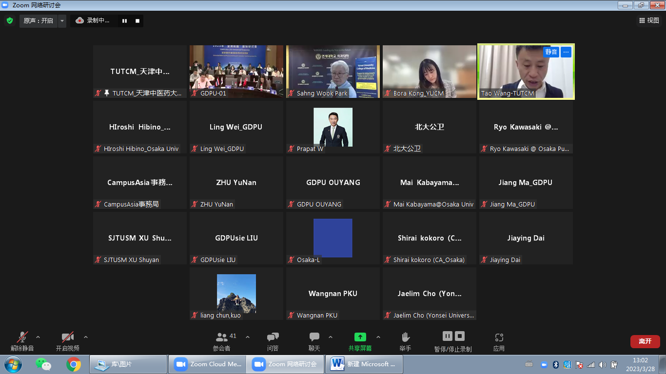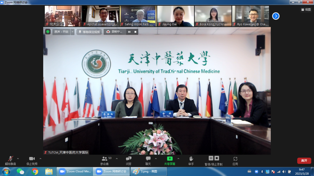 3月28日至29日,2023年“亚洲校园”国际研讨会在线召开。本次研讨会主题为“后疫情时代国际医药学研究共同体”,来自中国、日本、韩国、泰国九所大学师生及项目负责人参会。天津中医药大学国际教育学院院长金军、副院长李海南,研究生院院长王涛及相关教师、研究生代表参会。