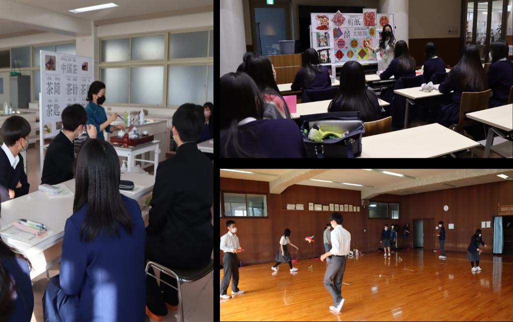 县立西宫北高中开展的中华茶道文化讲座、大阪帝塚山学院高中和县立伊川谷高中开展的中华传统文化讲座