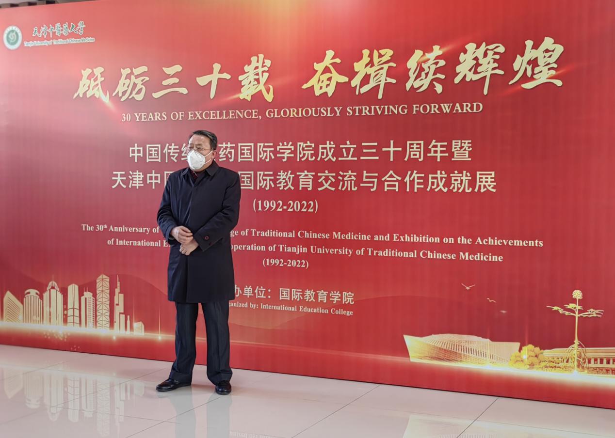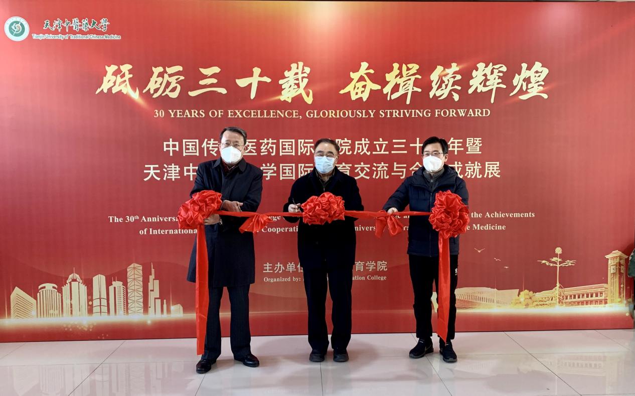 12月30日,中国传统医药国际学院成立三十周年暨天津中医药大学国际教育交流与合作成就展开幕式在我校国际教育学院五楼举行。我校名誉校长张伯礼院士、党委书记刘革生、副书记李鑫出席并参加剪彩。开幕式由国际教育学院党总支书记李立祥主持,国际教育学院留学生及相关领导、教师代表参加。