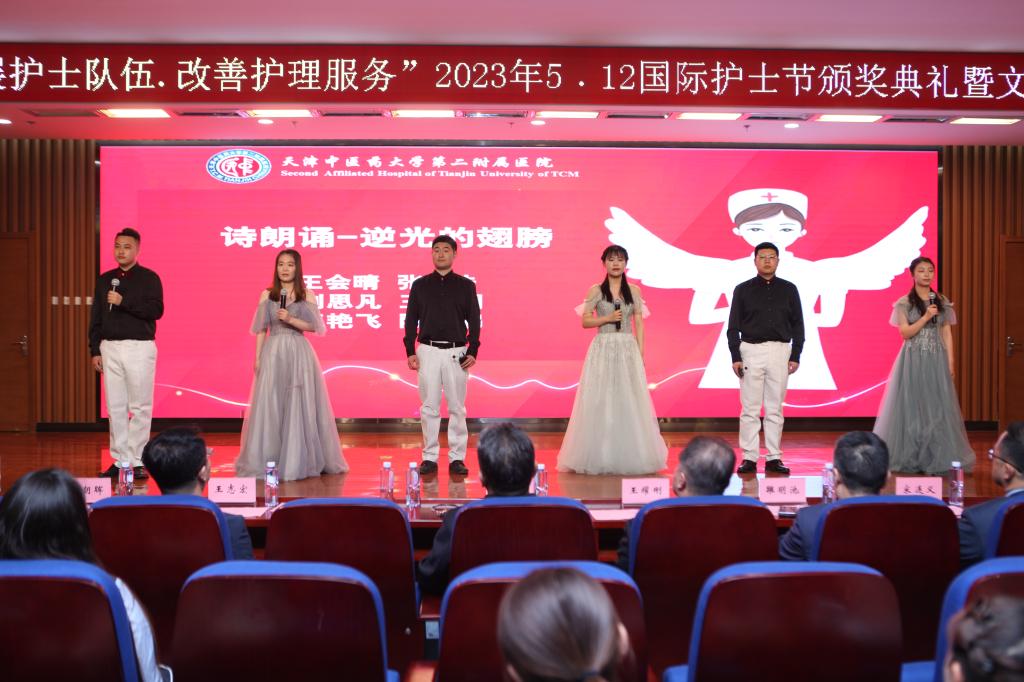为迎接第112个国际护士节,激励广大护士心向党、跟党走,宣传先进典型,展现护士良好精神风貌和职业风范,2023年5月9日下午,中医二附院在门诊五楼第一会议室举办了“发展护士队伍,改善护理服务”5.12国际护士节颁奖典礼暨文艺汇演。天津中医药大学副校长王耀刚出席,第二附属医院全体领导班子成员、部分中层干部、护士长及获奖护士参加会议。护理部主任王树苓主持会议。