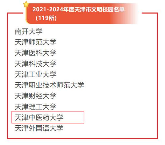 近年来,天津中医药大学坚持以习近平新时代中国特色社会主义思想为指导,全面贯彻落实党的二十大和二十届二中、三中全会精神,深入学习贯彻习近平文化思想,学习贯彻习近平总书记关于精神文明建设的重要论述精神,学习贯彻习近平总书记视察天津重要讲话精神和对天津工作一系列重要指示要求,深刻领悟“两个确立”的决定性意义,增强“四个意识”、坚定“四个自信”、做到“两个维护”,聚焦立德树人根本任务,秉承“突出价值引领、注重工作实效、强调广泛参与”的文明校园创建理念,大力培育和践行社会主义核心价值观,深化拓展“争做文明有礼天津人”主题活动,学校文明校园创建卓有成效,呈现出基础扎实、发展均衡、特色鲜明的崭新面貌。