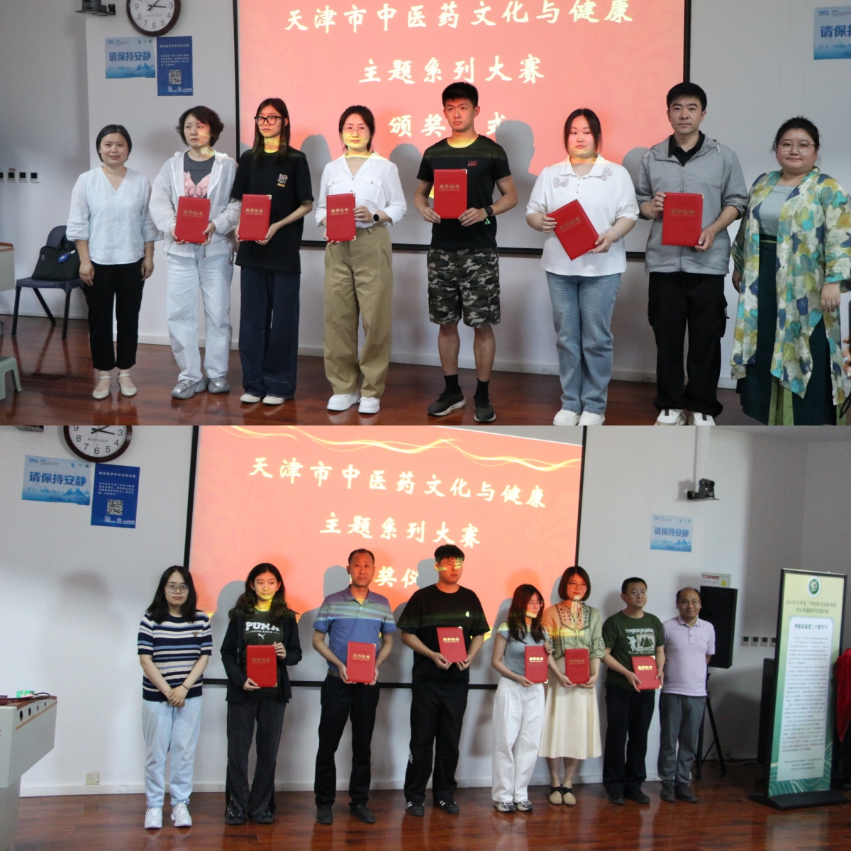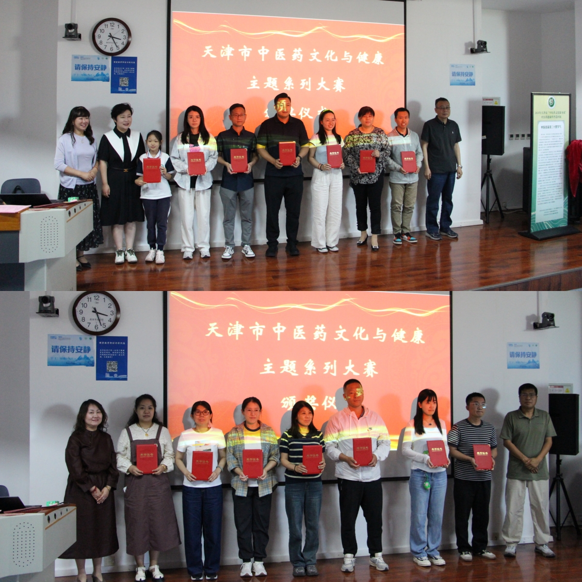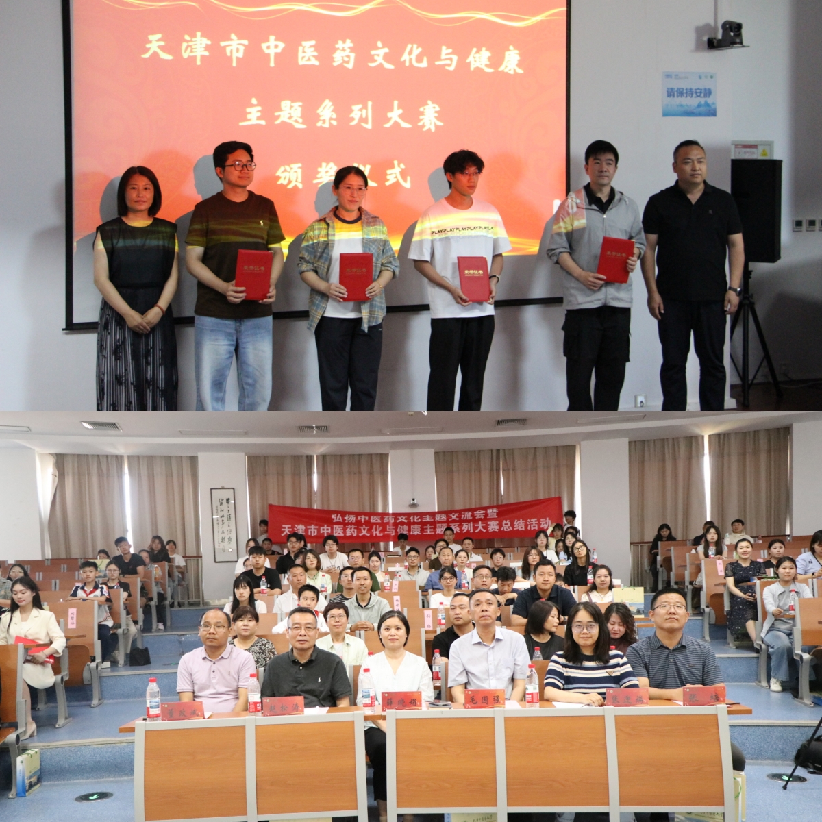 6月3日,由天津市卫生健康委、天津市教委主办,天津市中医药文化研究与传播中心承办的“天津市中医药文化与健康主题系列大赛”总结颁奖大会于天津中医药大学文化与健康传播学院举行。天津中医药大学党委副书记张华泉,天津市教科院中小学综合实践教研员赵松涛主任,天津职业大学学工部副部长董政斌,天津市中西医学会秘书长李清心出席,天津中医药大学文化与健康传播学院、校团委相关负责同志,各区教育局、13所高校及15所中小学参赛获奖的师生代表、获得大赛优秀组织奖的单位代表,以及天津中医药大学各学院的师生代表共100多人参会。