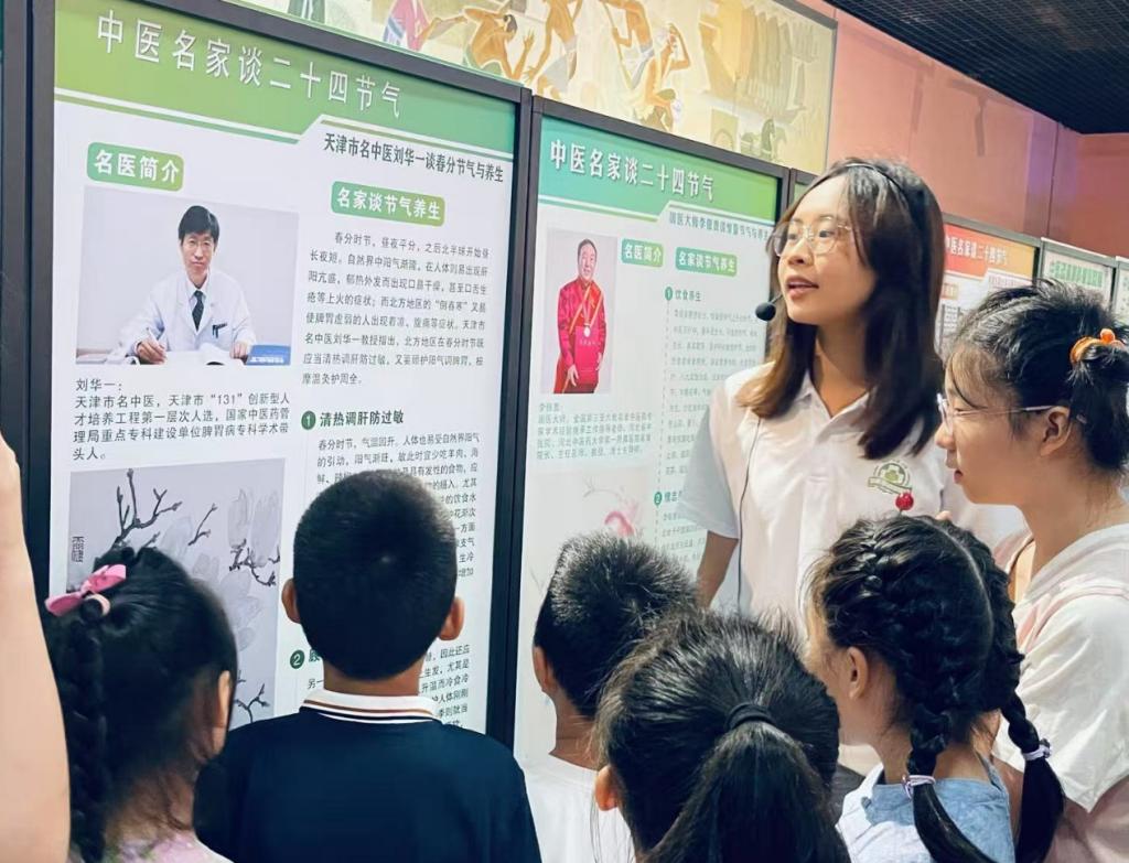 本次巡回展览首个公共展区面向市民开放,为期2个月,由天津市中医药文化研究与传播中心·张伯礼科普工作室、天津中医药大学健康传播研究中心、天津中医药大学文化与健康传播学院、天津科技馆联合主办。国医大师、中国工程院院士张伯礼教授强调:“二十四节气是中华优秀传统文化的代表,蕴含‘天人合一’哲学理念。人体活动需顺应自然节律调整,通过节气养生可调节气血阴阳平衡,增强正气,预防疾病。”这一科学视角下的养生哲学为展览奠定了坚实的学术基础。展览匠心独运,深度还原天津中医药大学联合天津美术学院首创的《中医名家谈二十四节气》专栏精华。特色鲜明之处在于“双轨并行”:荟萃全国24位中医药名家深度解读节气养生与防病要义;同时巧妙融合书画艺术创作,将抽象的中医理论转化为直观可感的视觉语言。所有展陈内容均严格参照张伯礼院士总主编、毛国强教授主编的相关权威著作,确保学术严谨性。