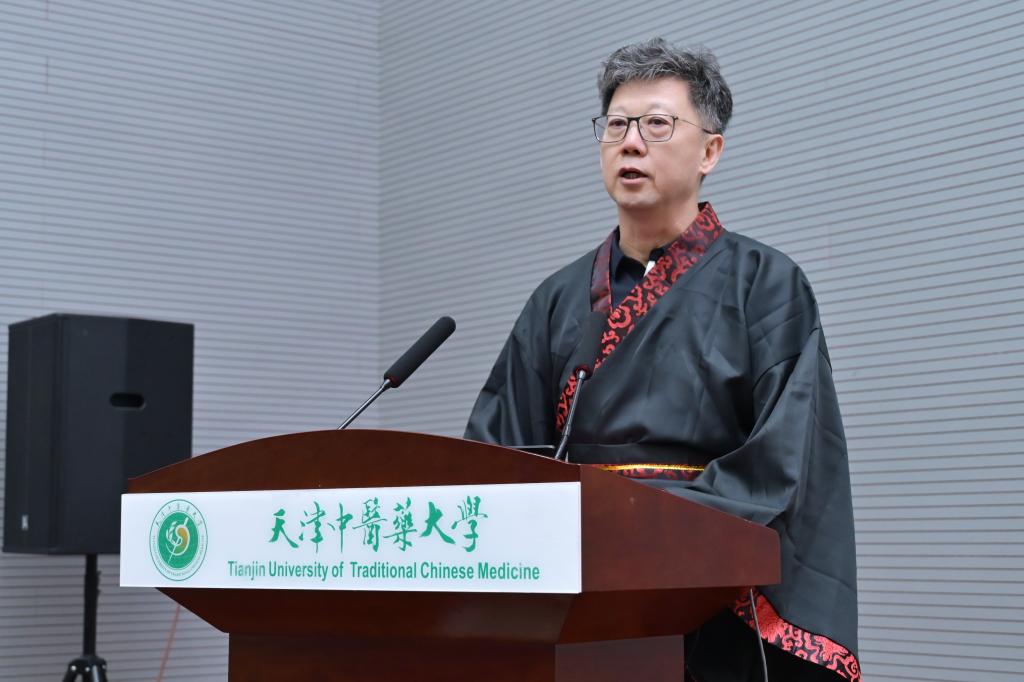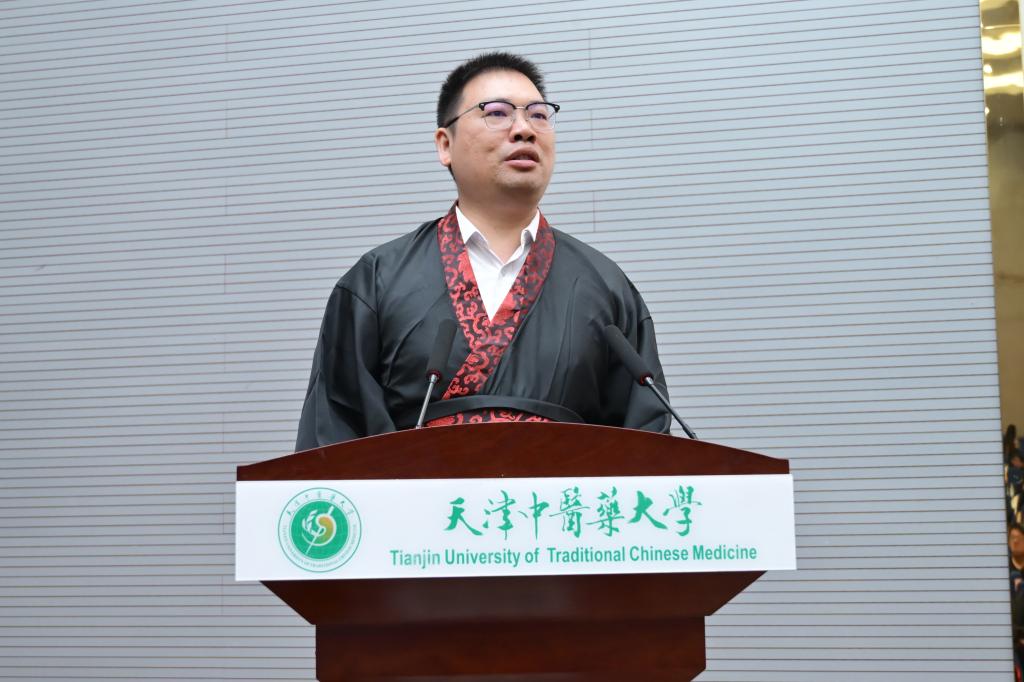 最后,天津中医药大学郭义副校长总结发言,他强调了“学敏班”的重要性,并对新入班的同学们寄予厚望。他表示,要把石学敏院士的研究精神与探索精神牢记于心,坚持牢记“守正创新”的思想观念。“学敏班”的拜师仪式,不仅仅意味着一份师徒关系的确立,更是对中医文化的一种传递和弘扬。愿这份传承,如同流水般不息,为博大精深的中医文化注入新活力。另外,从学生成长的角度,郭义副校长表示鼓励学生积极跟师,认真钻研,要巩固牢记中医古籍知识,同时提到导师要关心学生的成长,教学和临床协调推进,共同探索和完善学生培养过程的评价机制和效果反馈体系。