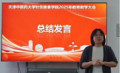 会议最后,针灸推拿学院郭小学书记对本次大会进行了全面总结发言,充分肯定了本次教育教学大会的成果,对学院过去一年的教育教学工作给予了高度评价,同时也对未来的工作提出了更高的要求和期望。鼓励全体教师继续秉持融合创新的理念,不断赋能未来,为推动针灸推拿学院教育高质量发展贡献更大的力量。