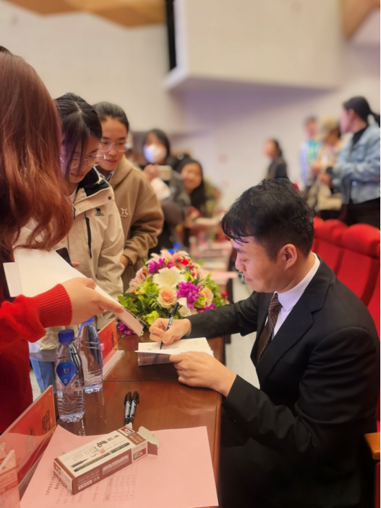 讲座结束之后,陶勇医生还为现场100余名师生读者签名留念。陶勇医生的签名是对师生们学习热情的鼓励和激励,此时书香与医道交织,构成了一幅温馨而有意义的画面。