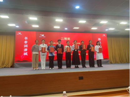 经过赛场激烈的争夺角逐,我校段东民同学获得“悦读之星”总决赛二等奖,图书馆获得优秀组织奖,图书馆刘怡书记代表图书馆上台领奖。
