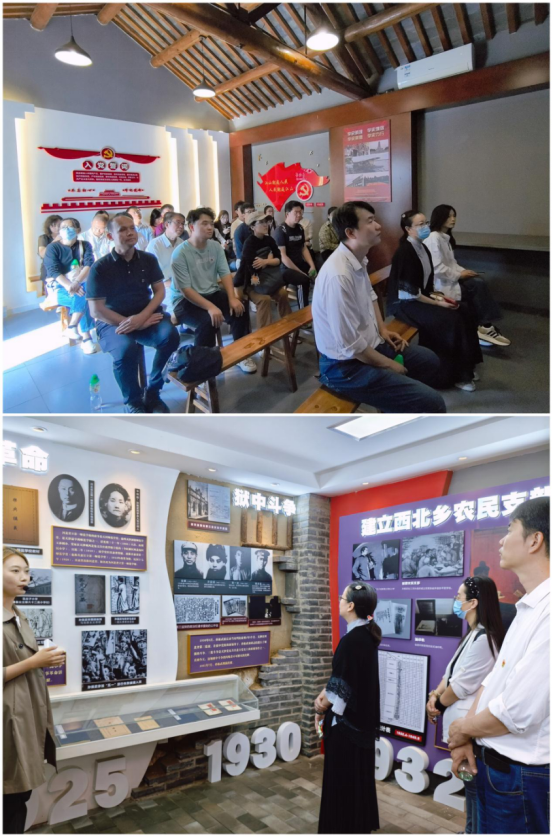 下午,大家赶赴北辰区双口镇,参观天津第一个农村党支部旧址和安幸生烈士故居。“中共西北乡农民支部”旧址位于双口镇中河头村,与安幸生烈士故居相邻。复原后的旧址由主题广场、中共西北乡农民支部历史陈列馆和三河头平民学校旧址三部分组成。1931年,孙振武受中共河北省委指派,到三河头小学任教,并负责农运工作。由于安幸生在家乡打下良好基础,很快,孙振武发展当地农民安毓树、丁春发入党,并于1932年4月建立了中共西北乡农民支部,是当时天津8个基层党支部中唯一的农村党支部。