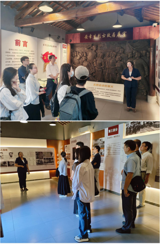 为庆祝中华人民共和国成立75周年,深入学习贯彻党的二十大和二十届二中、三中全会精神,深刻领会习近平总书记视察天津重要讲话精神,进一步强化师生党员理想信念,践行四个“善作善成”要求,9月24日,管理学院党委与图书馆党总支联合开展“赓续红色血脉,凝聚奋斗力量”主题党日活动,组织师生党员40人前往安幸生烈士故居、天津第一个农村党支部旧址、海河红船实践学习。