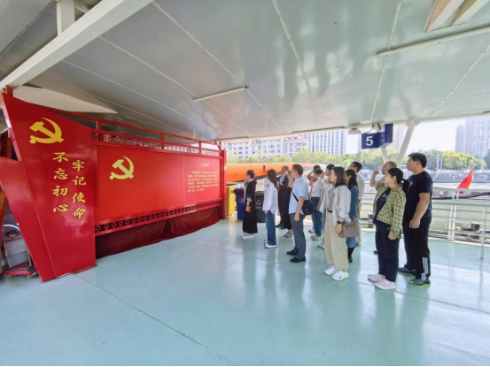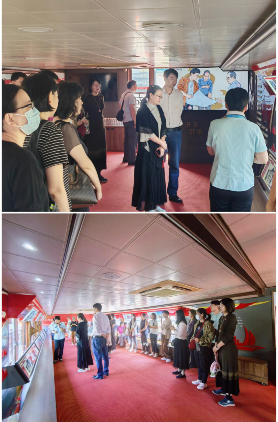 上午10点,满载党员的海河红船从古文化街码头正式起航,开启天津红色记忆之旅。这个移动的展览馆共分为“新民主主义革命”“百业俱兴”“改革开放”“现代化天津”四个部分,串起了津门百年峥嵘岁月。伴随着红船的前行,讲解员深入讲解了觉悟社、金汤桥、梁启超故居等海河沿岸红色遗迹故事及张自忠、周恩来、邓颖超等历史人物的革命事迹。对照各类史料照片、珍贵展品和海河两岸文化底蕴深厚的历史建筑,师生党员们穿行在历史与现实的交汇处,深入感受百年来津沽大地风云变幻、波澜壮阔的红色历史和中国共产党领导天津人民的奋斗历程,进一步加深了对党的伟大成就和天津翻天覆地变化的思想认识。
