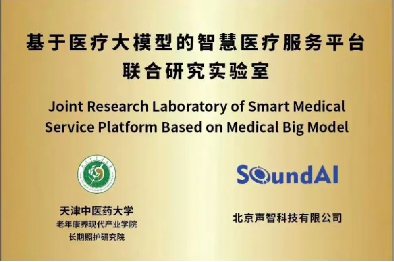 为推动康养服务与科技创新深度融合,天津中医药大学护理学院与北京声智科技有限公司持续开展全方位深度合作。2024年7月19日下午,天津中医药大学老年康养现代产业学院及长期照护研究院与北京声智科技有限公司共同建立的基于医疗大模型的智慧医疗服务平台联合研究实验室正式揭牌。声智科技副总裁黄赟贺、护理学院院长庞晓丽、党委副书记矫正强等领导老师参加揭牌仪式。