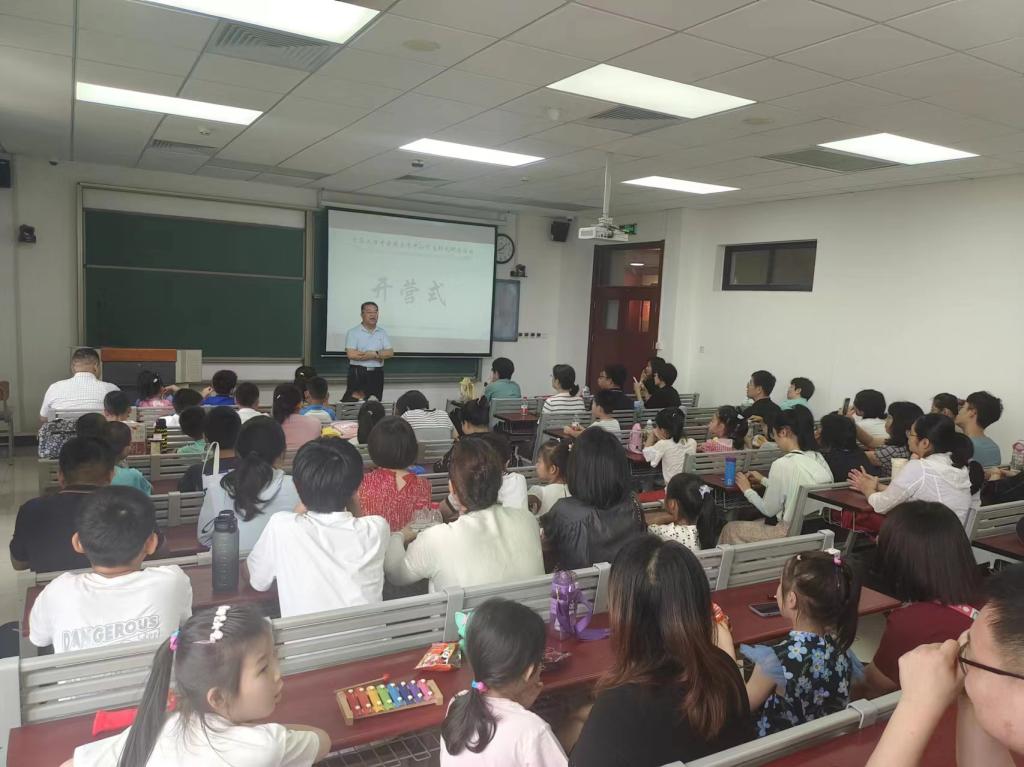 在开营式上,针灸推拿学院院长郭永明教授作了致辞,给孩子们讲解了中医针灸文化,鼓励孩子们积极参与,以针载文、以针载道,寄娱于学,寓教于乐,以文化人。学院科教实验室主任孙颖老师随后详细介绍了活动内容,包括9项特色项目,涵盖从传统到现代的各种中医针灸体验。