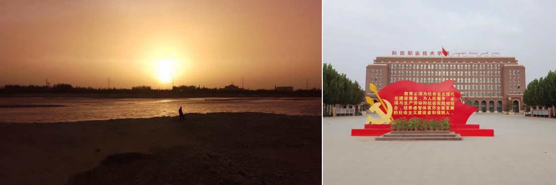 和田地区位于新疆南端昆仑山和喀拉昆仑两山之下,玉龙喀什河蜿蜒其中,属干旱荒漠气候,年均降水量只有35毫米,蒸发量却高达2480毫米。初来乍到,最大的感受就是这里的夏天居然比天津的冬天还要干燥,鼻子经常出血。恶劣的地理环境,更让我对当地百姓生活的韧劲儿,以及与恶劣环境斗争的精神感到由衷的敬佩,也进一步激发了我支援边疆,为祖国建设贡献无悔青春的坚定信念。我所援派的和田职业技术学院是2018年5月教育部备案成立的全日制高职院校,专兼职教师234人,注册学籍学生4843人。九成以上的维吾尔族生源,语言的差异,早10晚8的不同上下课作息,在充满新鲜感的同时,也让我感受到了援派工作的困难和挑战。