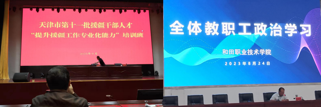 按照市委和市教育两委部署要求,学校党委选派我到新疆和田职业技术学院支教,2023年8月,在学校及院领导的送别叮嘱和关怀声中,我随天津市第十一批援疆教师团队顺利抵达受援单位,开启为期一年半的援疆任务。一年半,不算长,也不算短,远离家乡亲人和同事,只身在外,我告诉自己首要任务就是顶住压力,经受考验,在全新的陌生环境里做出优秀的成绩。新环境新事物新工作如潮水般涌来,顾不上自己还带着新摔伤的腰椎病痛,还得割舍对新婚蜜月的眷恋,我便已全身心投入新工作中。