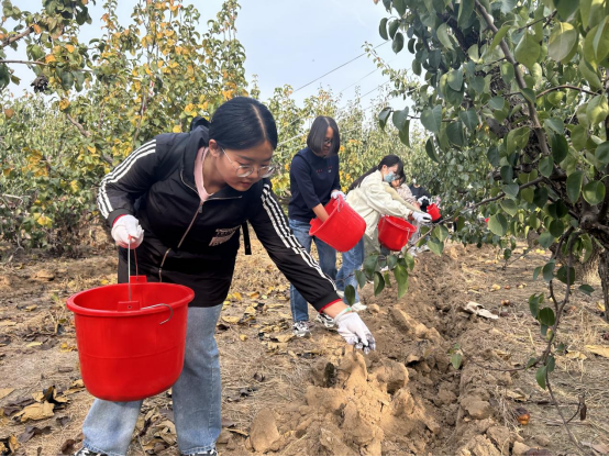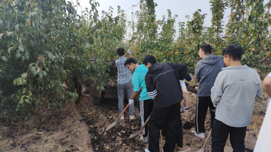 罗阁庄村党支部书记兼村委会主任秦学立围绕村发展史、梨树种植历史、梨树栽植技术、养护技巧等进行了详细的介绍,重点就施肥技术要领进行了讲解。同学们热火朝天地完成了为梨树施肥的劳动任务,捧着丰收的大梨,真正品尝了劳动之甜,幸福之美。