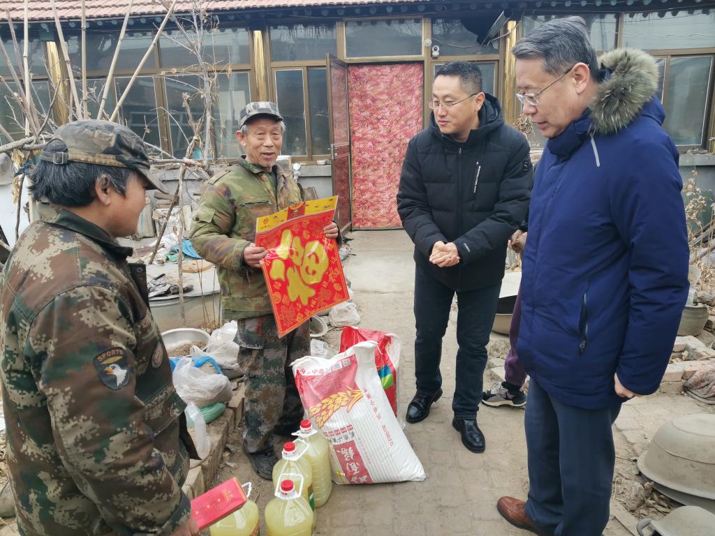 寒冬送真情,关怀暖人心。为深入贯彻落实党的二十大精神,助力乡村振兴发展,2月1日上午,校党委书记刘革生、校党委副书记李鑫、驻校纪检监察组组长柳春敏和党委办公室、党委组织部主要负责同志一行深入蓟州区邦均镇前街村、西水泉村和白涧镇白涧村、庄果峪村进行走访慰问,为当地困难群众和我校驻村干部送去关怀与温暖。